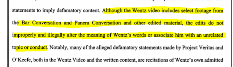 “Notably, many of the alleged defamatory statements made by Project Veritas and O’Keefe, both in the Wentz Video and the written content, are recitations of Wentz’s own admitted actions and statements.”