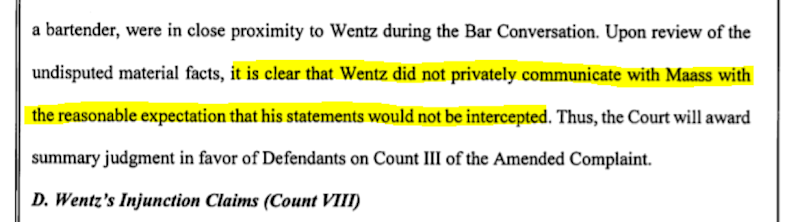 “…Defendants did not commit defamatory acts against Wentz and did not illegally record conversations…
