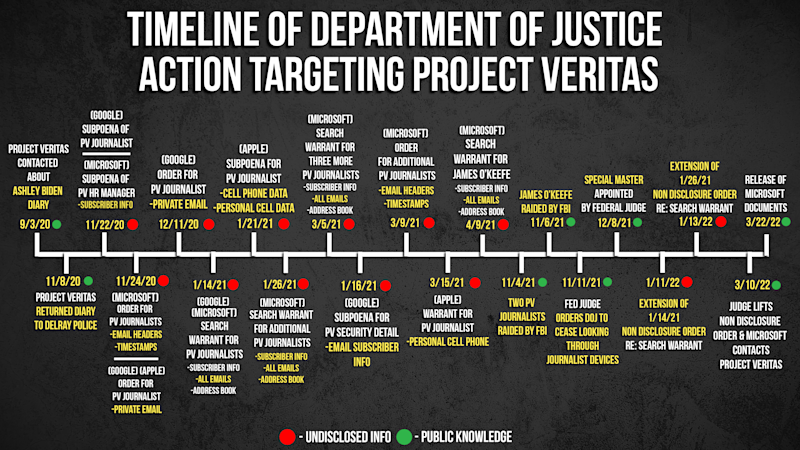 [NEW YORK – Mar. 21, 2022] Bombshell Microsoft Corporation legal documents released by Project Veritas reveal that President Biden’s Department of Justice filed a series of secret warrants, orders, and a subpoena to surreptitiously collect privileged, and constitutionally protected, communications and contacts of eight Project Veritas journalists from Microsoft Corporation.