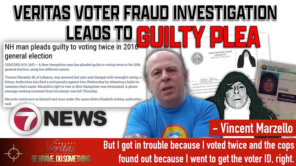 [CONCORD, N.H. – Feb. 19, 2021] Vincent Marzello, an individual who voted twice in the 2016 election, has plead guilty to a voter fraud charge in New Hampshire as a direct result of a Project Veritas investigation.